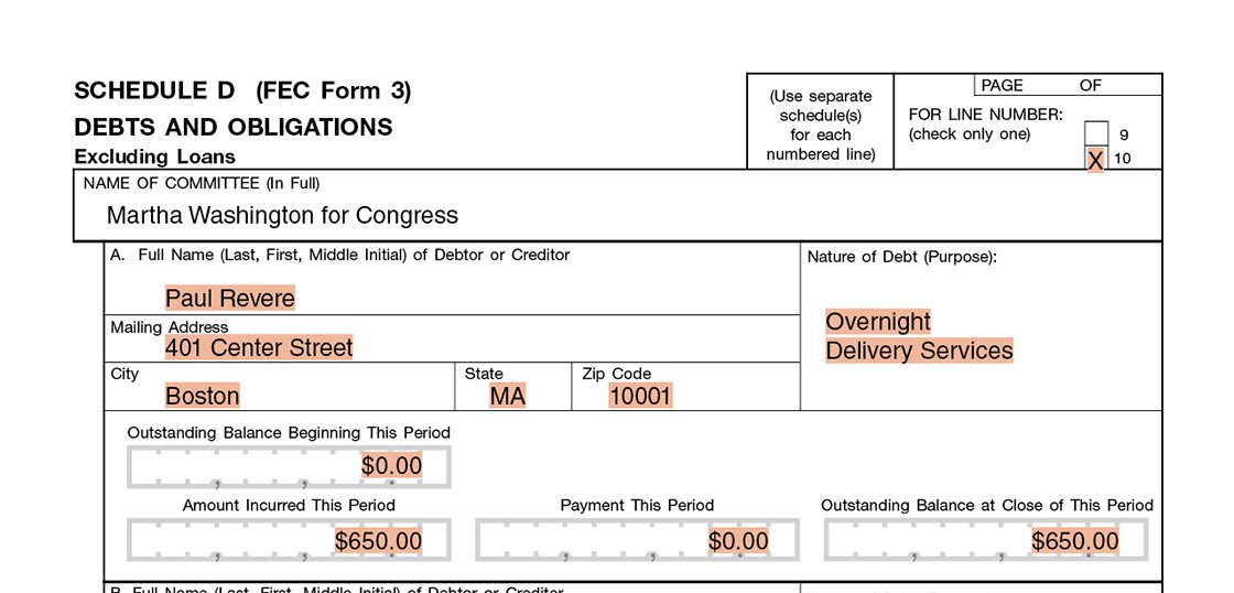 When the committee makes payments on this debt, it will show payments in the "payment this period" field and decrease the outstanding balance at the end of the reporting period.