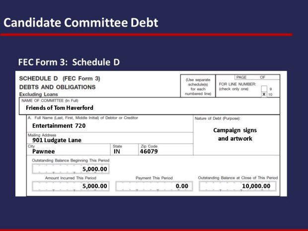 Example C: FEC Form 3, Schedule D: Candidate Committee Debt